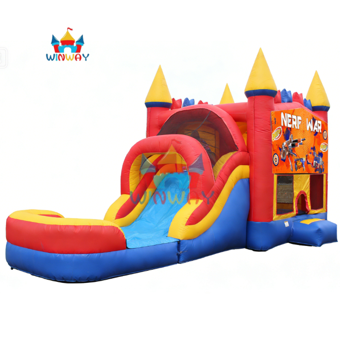 Château gonflable sur le thème de la guerre NERF avec toboggan, qualité commerciale, pour les fêtes d'enfants
