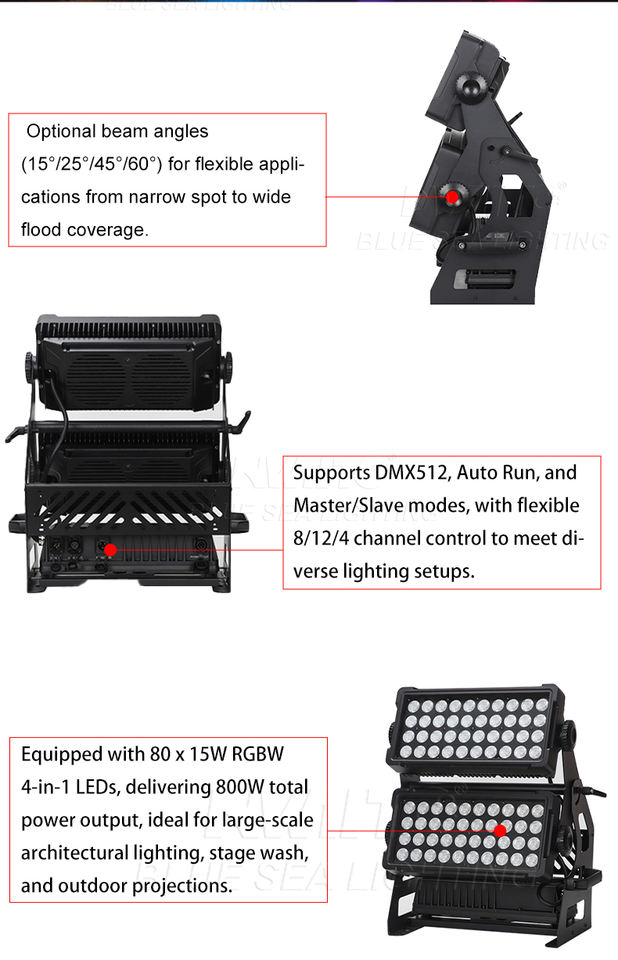 Nom du produit:Projecteur LED extérieur étanche 80x15W RGBW 4en1