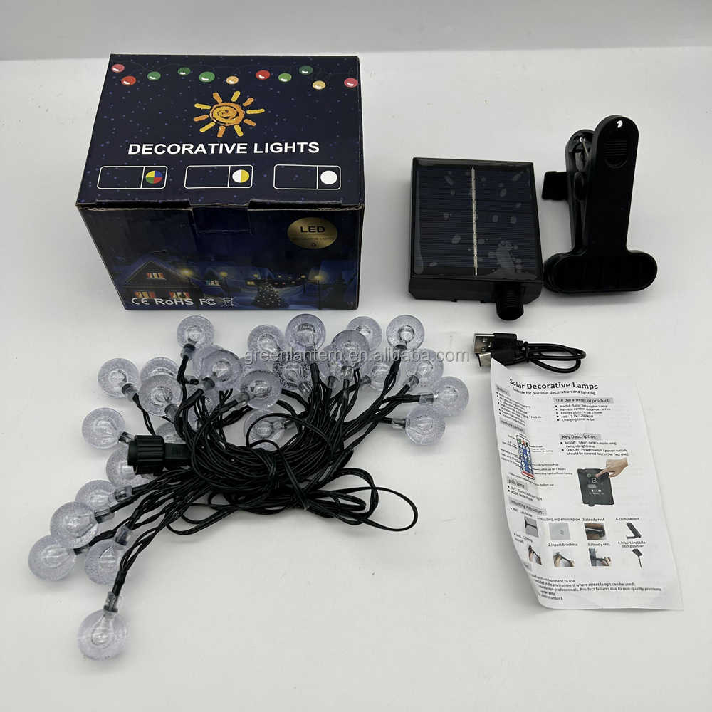 NOUVEAU Guirlande lumineuse solaire à LED avec boules à bulles de 2,5 cm, à clipser, pour jardin, allée, patio, Noël, extérieur, étanche