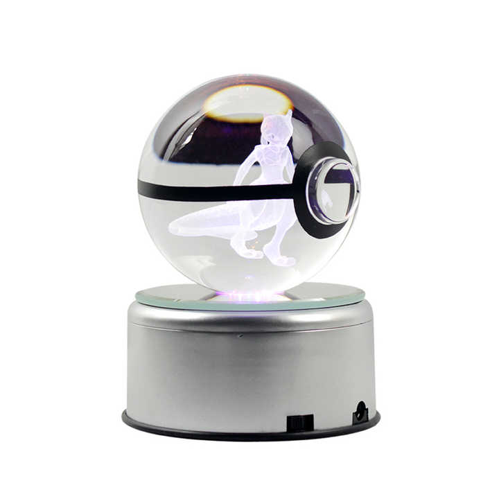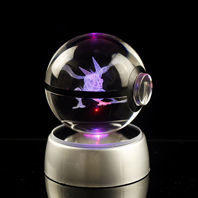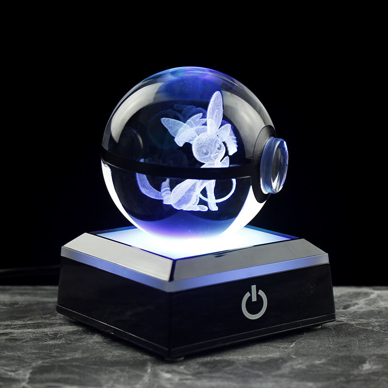 NOUVEAU 30MM 50MM 60MM 80MM Boule en cristal 3D Figurine d'action en cristal Pokemon Go Sphère en verre Lumière de nuit LED Cadeaux de Noël