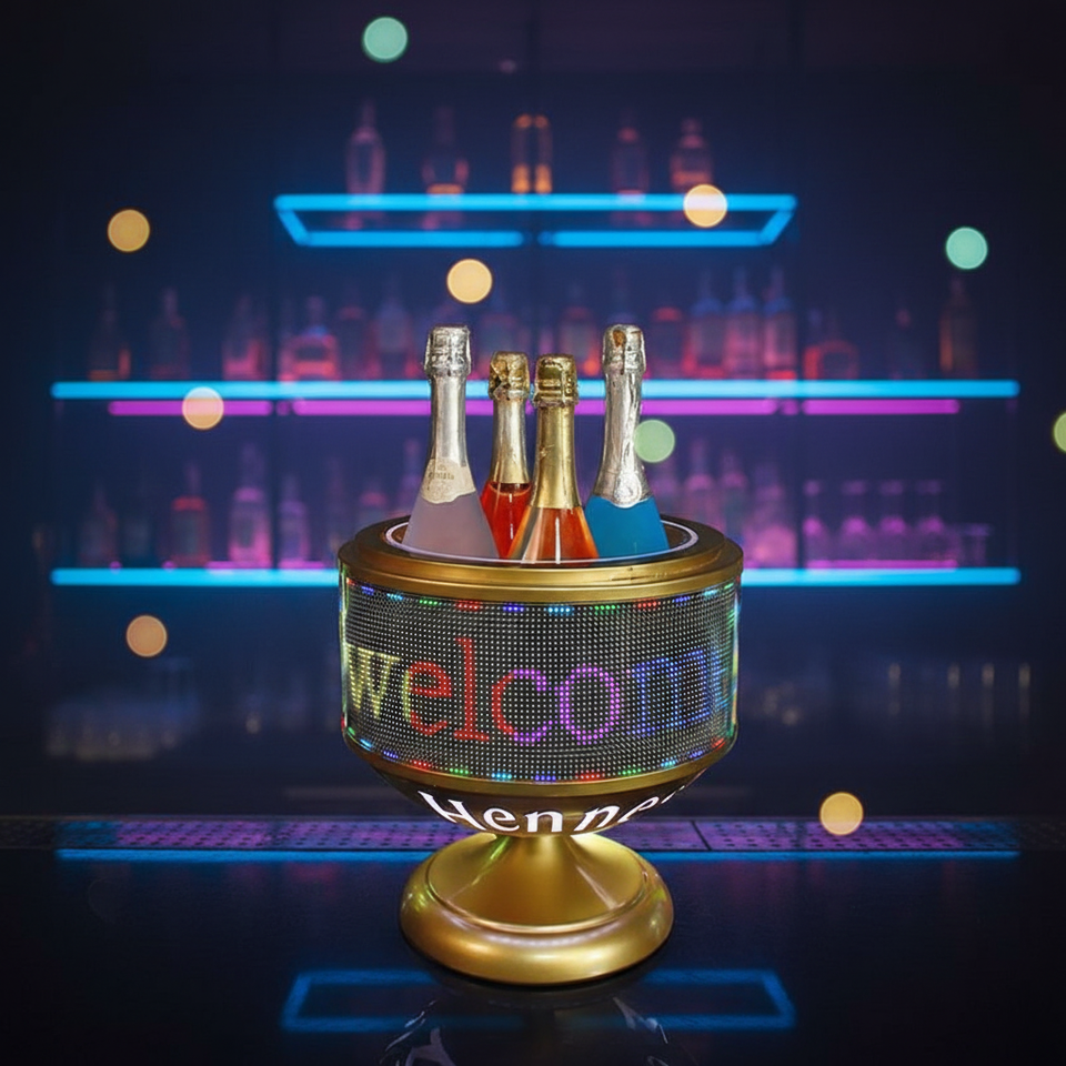 NOUVEAU présentoir LED programmable à défilement, écran VIP, glorificateur de bouteilles, éclairage de club, affichage de messages, présentoir de bouteilles en métal
