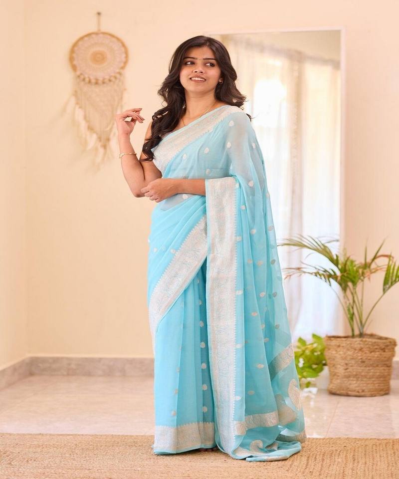 NOUVEL ARRIVAGE DALLE DE LIN TRAVAIL DE Tissage SAREE AVEC CHEMISIER NON COUDU VÊTEMENT FESTIF PRIX DE GROS VÊTEMENT ETHNIQUE CIEL