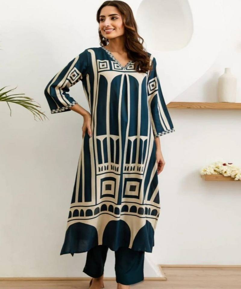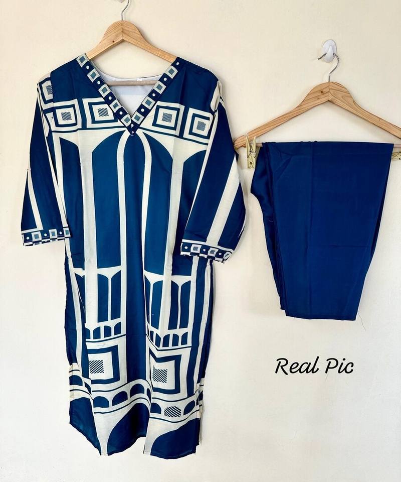 NOUVEL ARRIVAGE EN MOUSSELINE DE SOIE IMPRIMÉ NUMÉRIQUE TOP BAS ENSEMBLE FESTIVE WEAR COULEUR BLEUE PRIX DE GROS VÊTEMENT ETHNIQUE