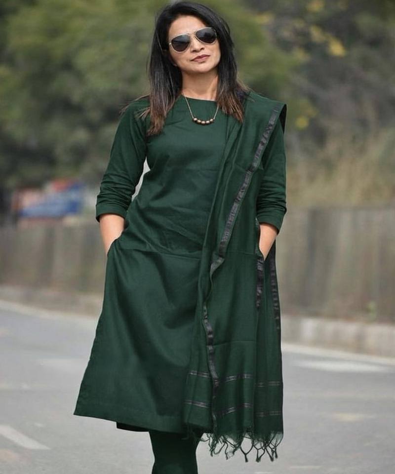 NOUVELLE ARRIVÉE - Ensemble haut et bas en coton uni style romain avec dupatta - Vêtement ethnique de créateur, idéal pour le quotidien - Prix de gros - Dernière collection - Vert