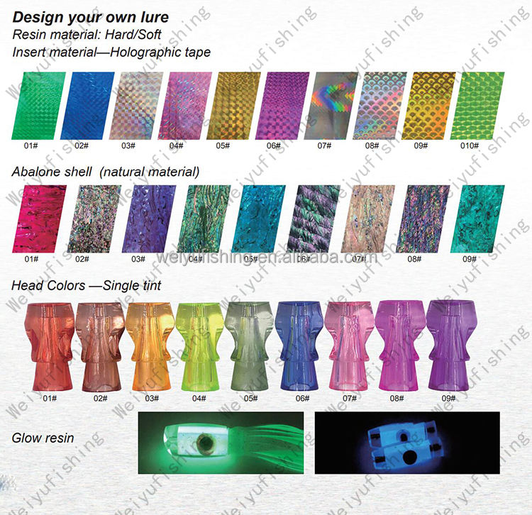 NOUVEAUTÉ WEIYU Leurre de pêche en eau salée à traîne, tête en résine multicolore en forme de coupe de 11 pouces, motif pieuvre et jupes, pour thon