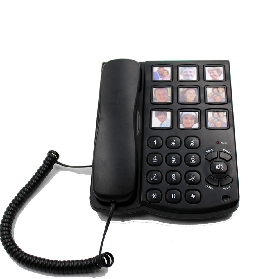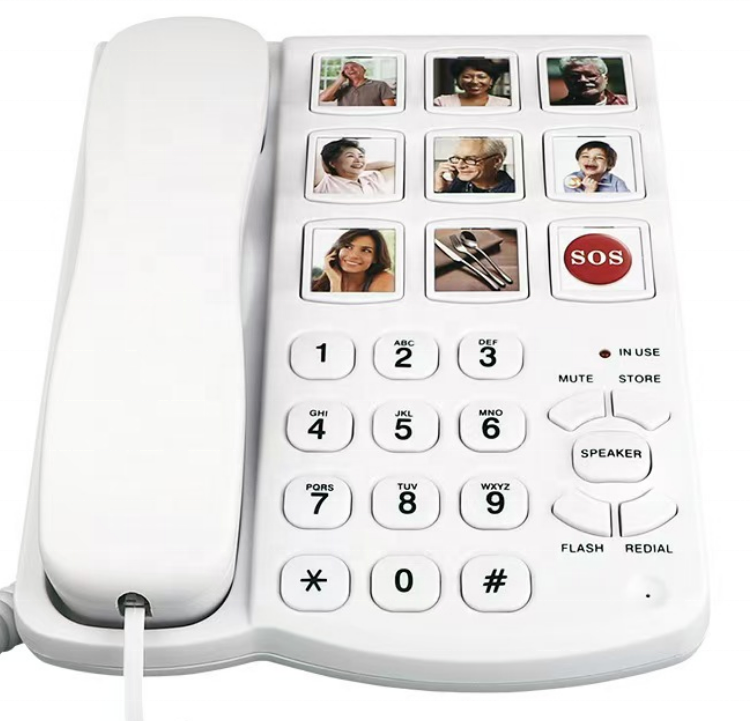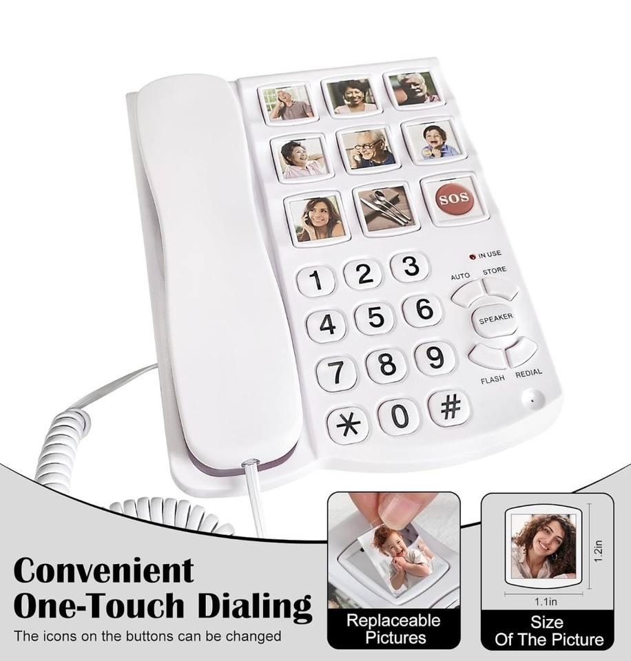 NOUVEAU Téléphone à gros boutons, téléphone filaire à mémoire photo avec pendentif bracelet SOS pour ligne fixe pour personnes âgées