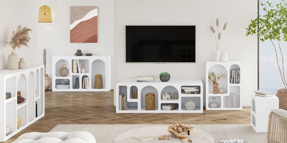 NOUVEAU Cave TV Stand Media Console Cabinet, Home Decor Fir White MDF Wood TV Furniture