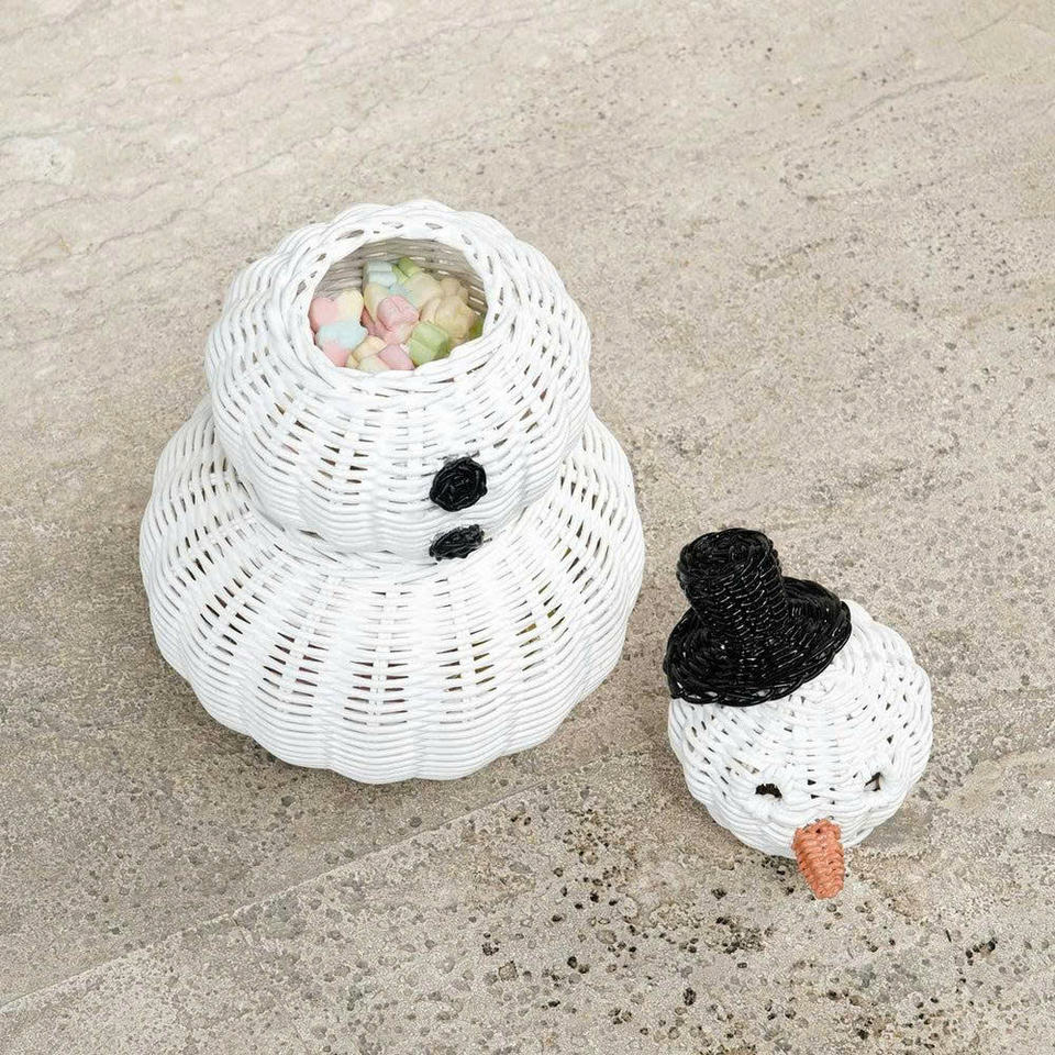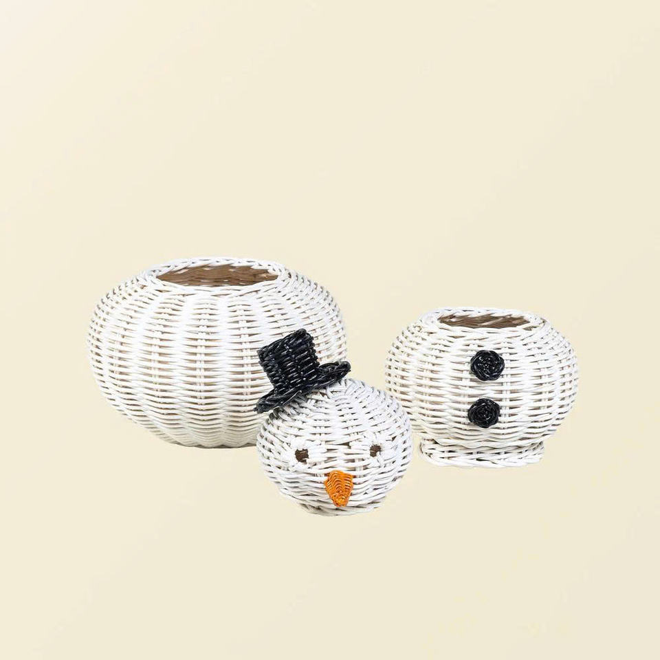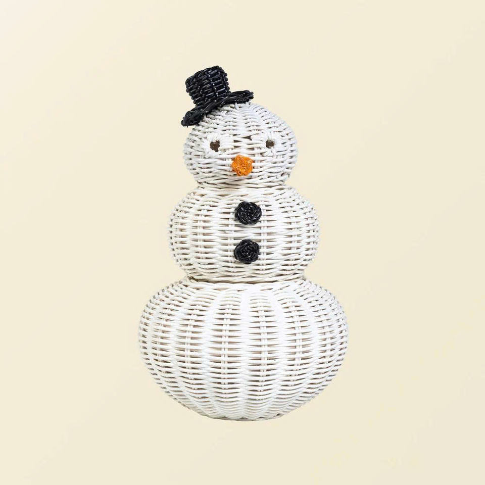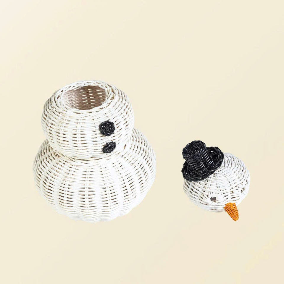 Panier de Noël Bonhomme de Neige en Rotin Naturel