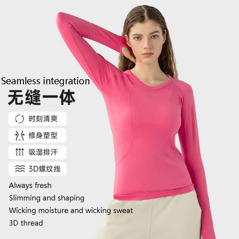 NOUVEAU T-shirt de sport transfrontalier à col rond pour le yoga, la course et le fitness, haut de sport respirant et ajusté à manches longues pour femme