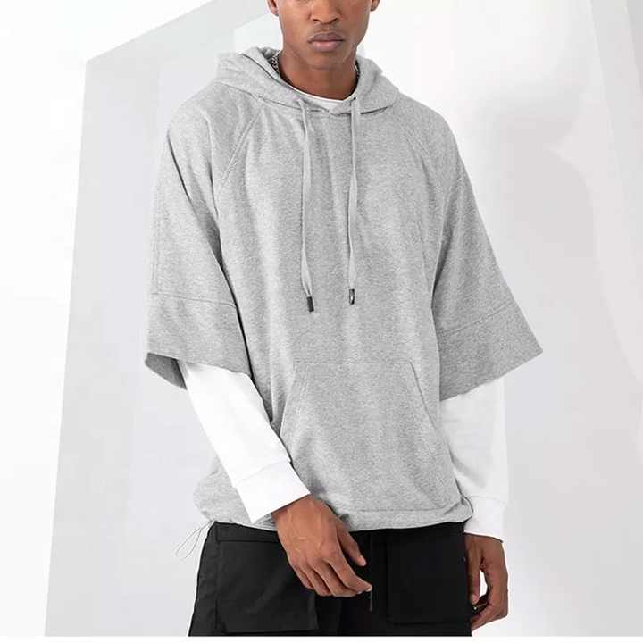 NOUVEAU Sweat à capuche léger en polyester/coton tricoté uni avec logo personnalisé, manches courtes régulières, écologique, pour homme
