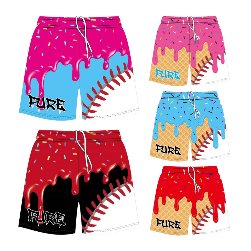Nouveau design, shorts de sport en mesh pour hommes, style streetwear, personnalisés, motif donut et crème glacée, 5 pouces, sublimation, à prix raisonnable.