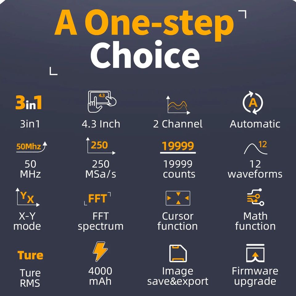 NOUVEAU Oscilloscope numérique Fnirsi 2C53P Taux d'échantillonnage en temps réel 50mhz 2 canaux 250MSa/s 4.3Inch Big Screen 3in1 Multimeter