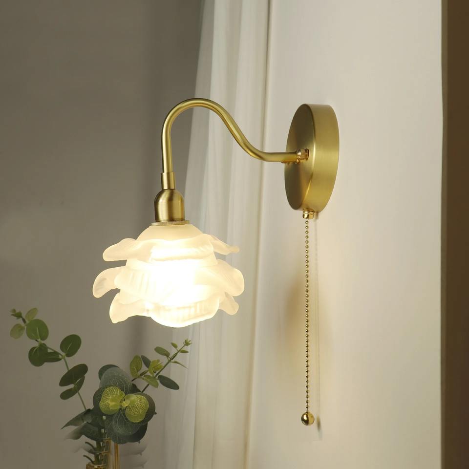 Nouvelle lampe de chevet de style français, luxe léger, rose, simple, style européen rétro avec interrupteur, décoration murale en verre nordique