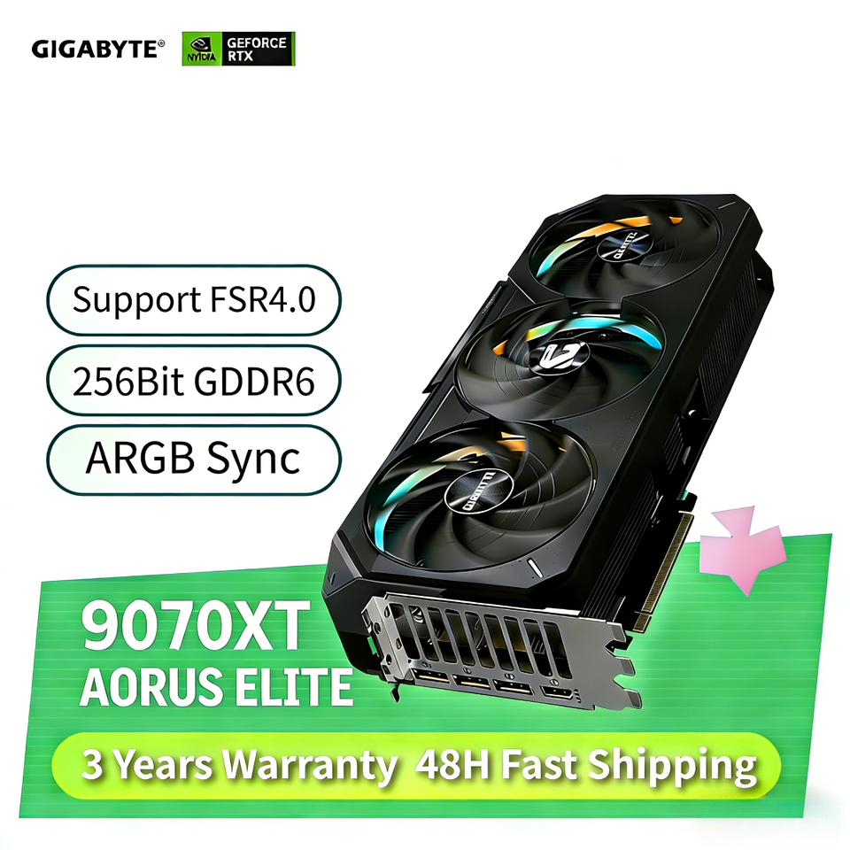 NOUVEAU GIGABYTE AMD GPU RX9070XT AORUS E 16G GDDR6 256 bits, composants informatiques de jeu pour ordinateur de bureau en stock