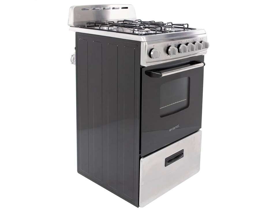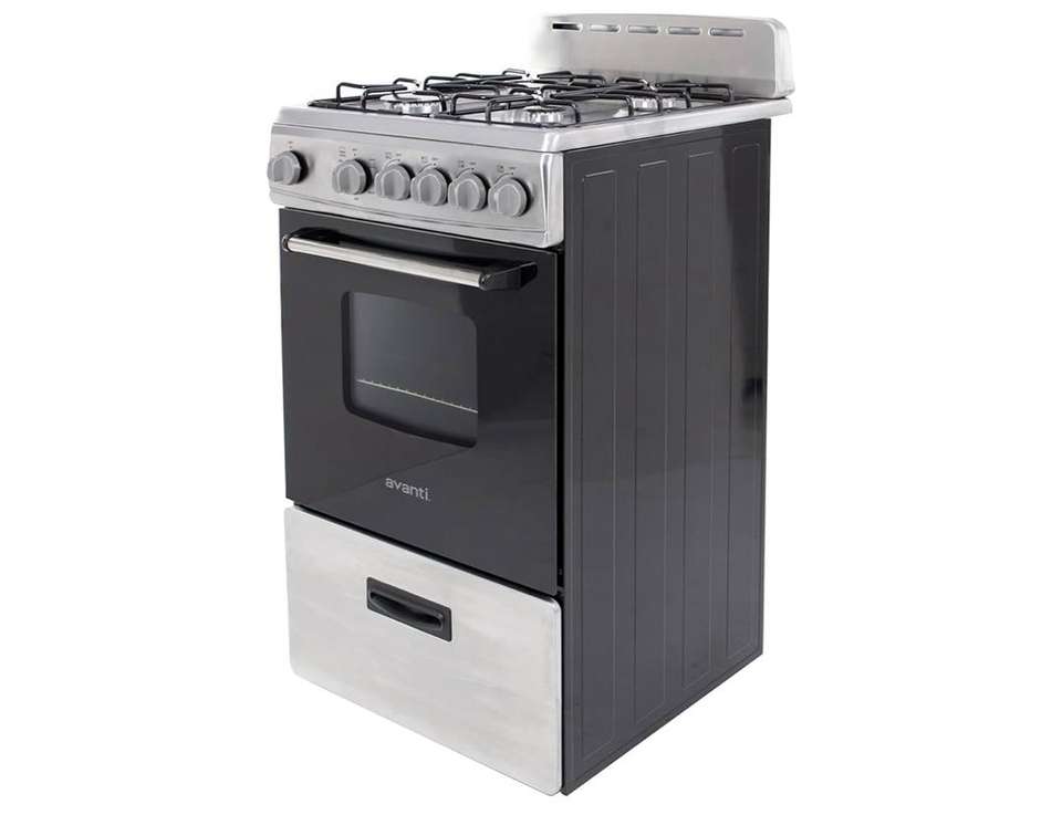 NOUVEAU Four à gaz compact, design autoportant, 4 brûleurs scellés avec allumage électronique, 2,1 pi³ de volume, tiroir de rangement, gril 20 pouces