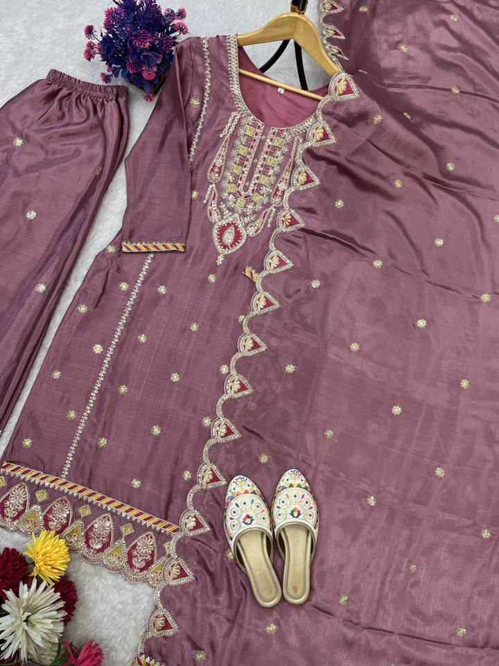 NOUVEAU PANTALON TOP LANCÉ ET DUPATTA AVEC TRAVAIL EN RELIEF EN 2 COULEURS DE JAUNE ET DE ROSE