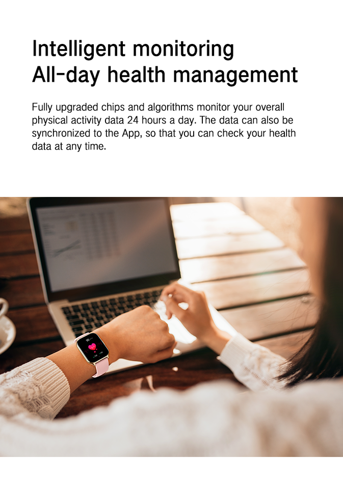 Chronographe, Calendrier, Alarme horloge, Sommeil, Mesure de vitesse, Pisteur fitness, Compteur de pas, Rappel de Téléphone, Répondre à un appel, Lancer essage, Rappel de message, Composez un numéro, Fréquence cardiaque Tracker, Contrôle des gestes, Les Médias sociaux Notifications, Traceur de calories, Rappel sédentaire, Gestion menstruelle, Assistant vocal AI, Temps du monde, Calculatrices