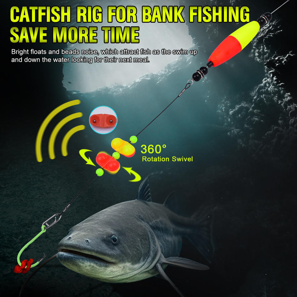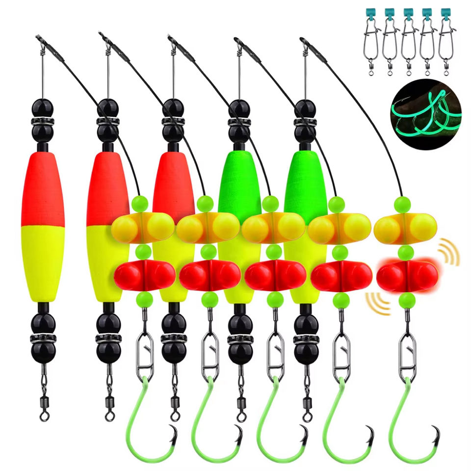 NOUVEAU OEM 5 pièces/sac Montage de pêche au poisson-chat de style européen pré-noué avec hameçons circulaires lumineux et perles sonores, flotteur cigare en EVA pour la pêche en rive