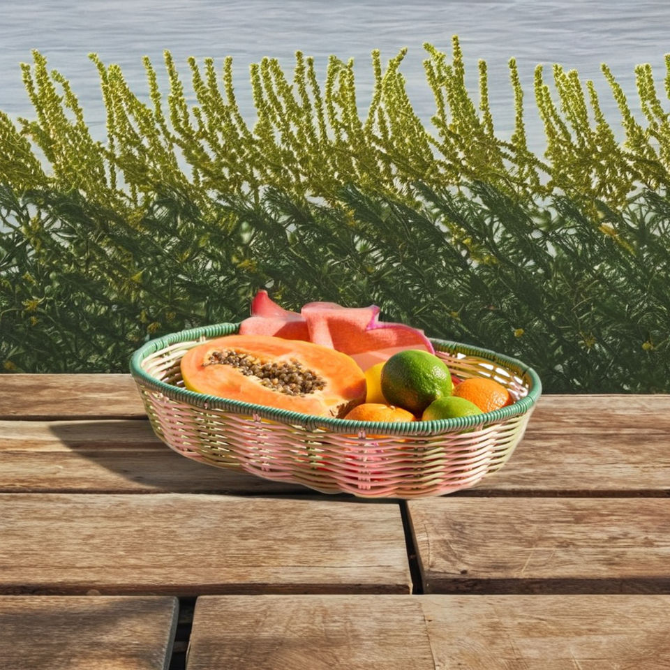 NOUVEAU PRODUIT! Tienphong Vente en gros Panier de rangement en rotin vert et blanc de seigle tissé à la main pour le stockage du pain ou des fruits