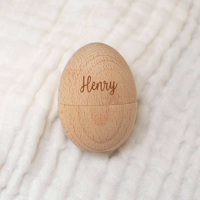 NOUVEAU Coquilles d'œufs en bois personnalisées gravées, couleur bois naturel, œufs de Pâques creux, décoration de festival en bois de pruche