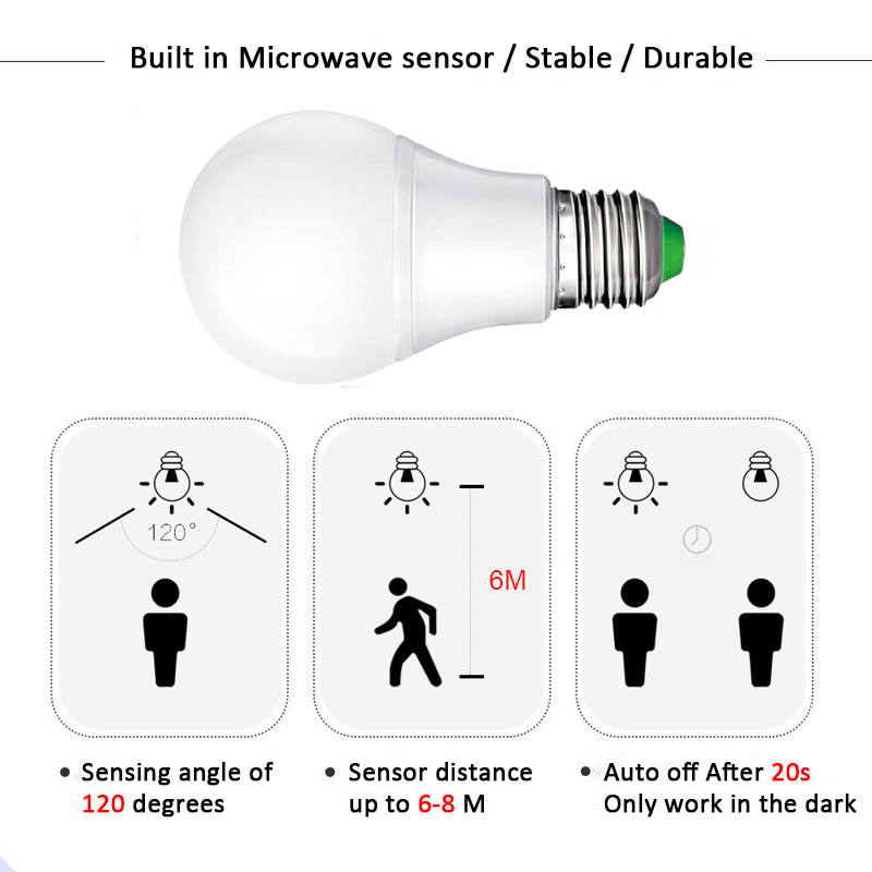 Ampoule LED intelligente à détecteur de mouvement radar micro-ondes E27, nouvelle et populaire, à économie d'énergie