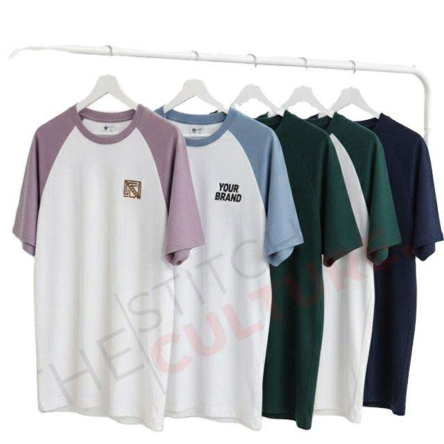 NOUVEAU T-shirt Raglan uni lourd 100% coton T-shirt surdimensionné Impression patchwork T-shirts pour hommes