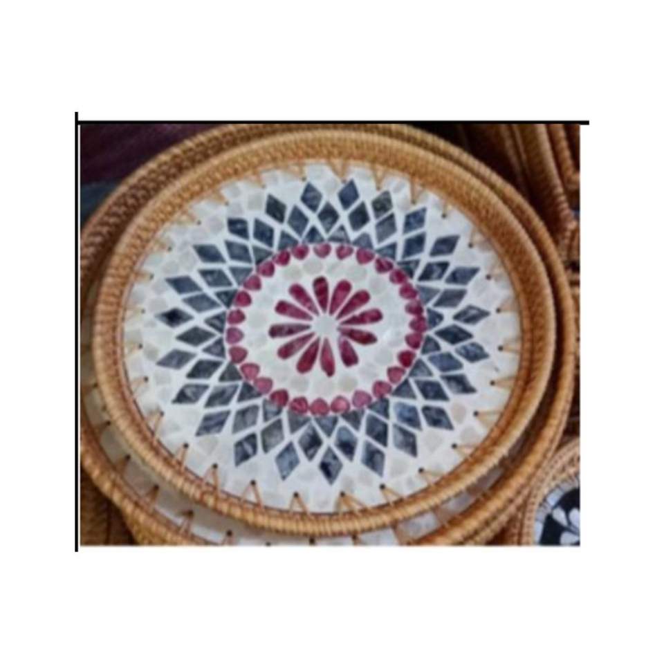 PLATEAU DE SERVICE EN ROTIN D'ÉTÉ DE NOUVEAU STYLE-PLATEAU DE SERVICE ALIMENTAIRE DE STYLE BOHÉMIEN AVEC POIGNÉES VENTE AVEC QUANTITÉ EN VRAC FAIBLE CHER