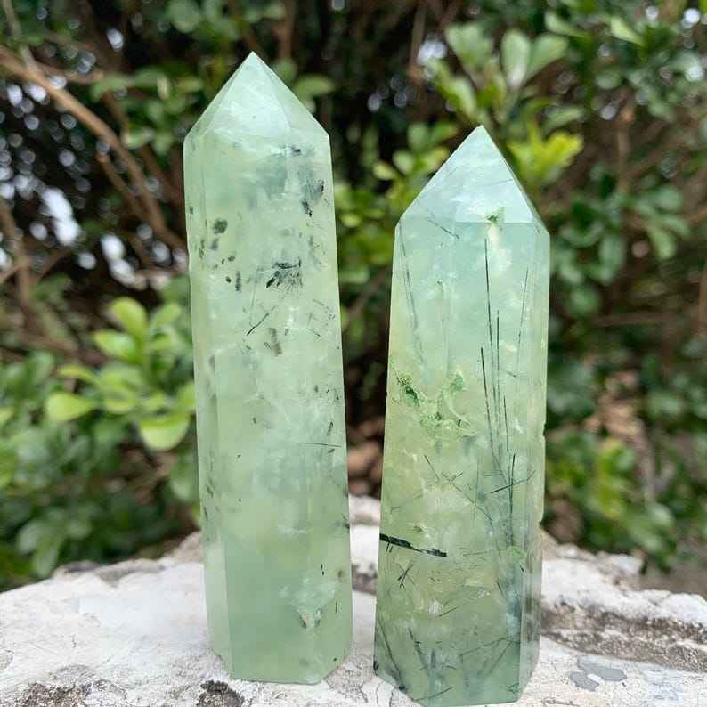 Nouveau gros Prehnite cristal tour Points belle qualité poli pierre semi-précieuse pour Feng Shui décoration de la maison amour