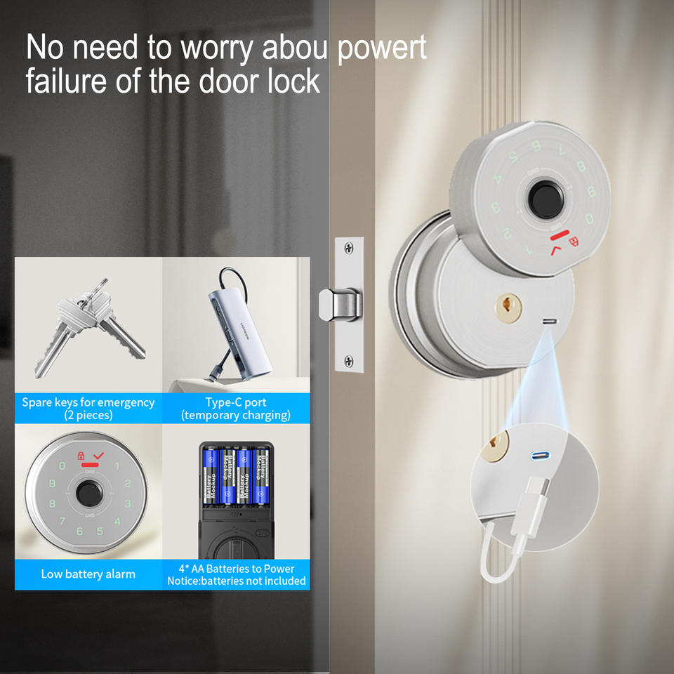 Serrure de porte intelligente IP avec déverrouillage par empreinte digitale NF Card avec application Tuya Sécurité de qualité supérieure Utilisation en intérieur