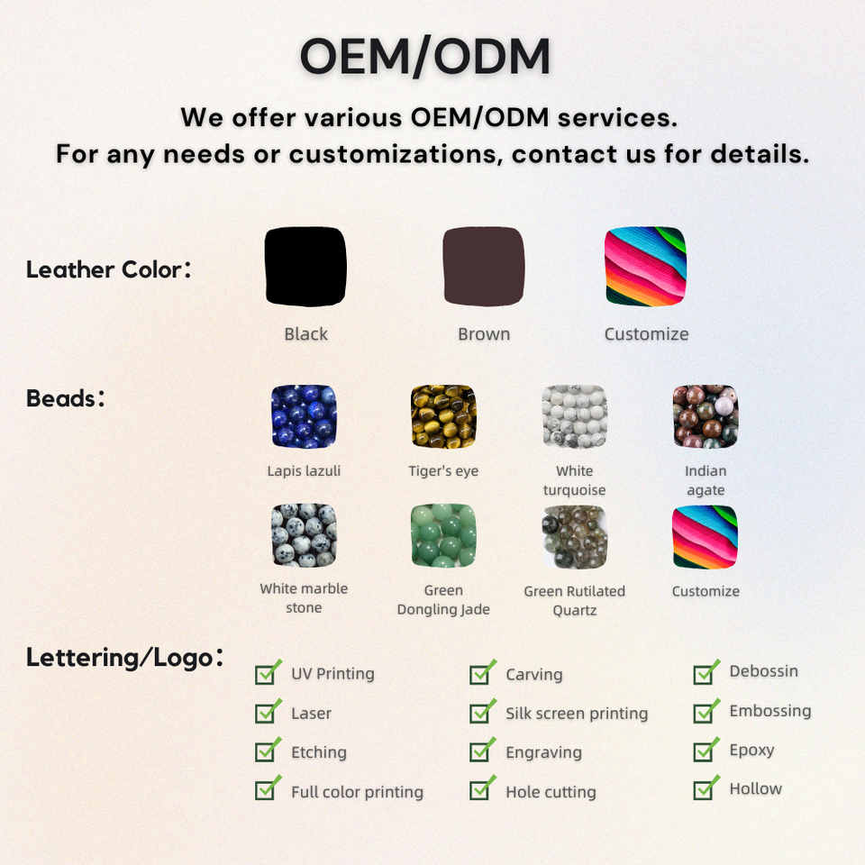 artisanat personnalisé:Couleur du cuir, Perles, Lettrage/Logo