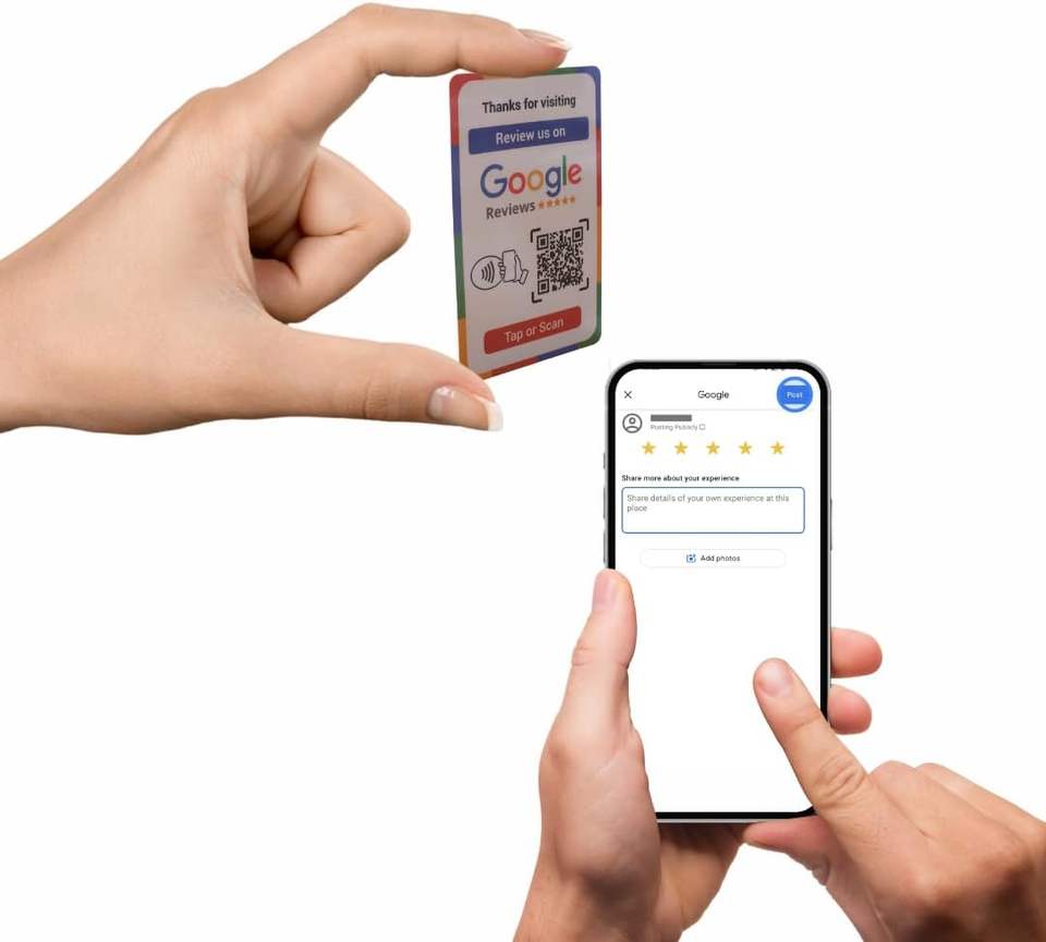 Carte NFC pour booster les avis Google, améliorer les commentaires des clients, scanner le QR, compatible iPhone et Android – Aucun abonnement à l'application requis, lot de 6, accès inclus