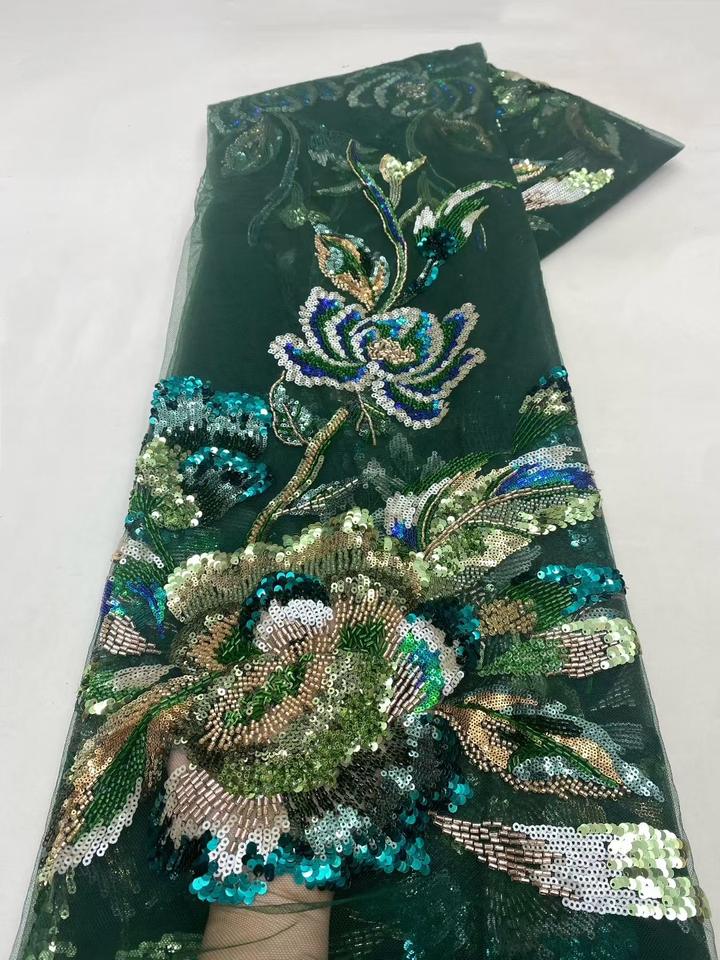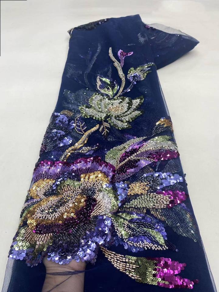 NI.AI Nouveau style Tissu en dentelle à motifs floraux brodés et perlés, Matière textile pour vêtements