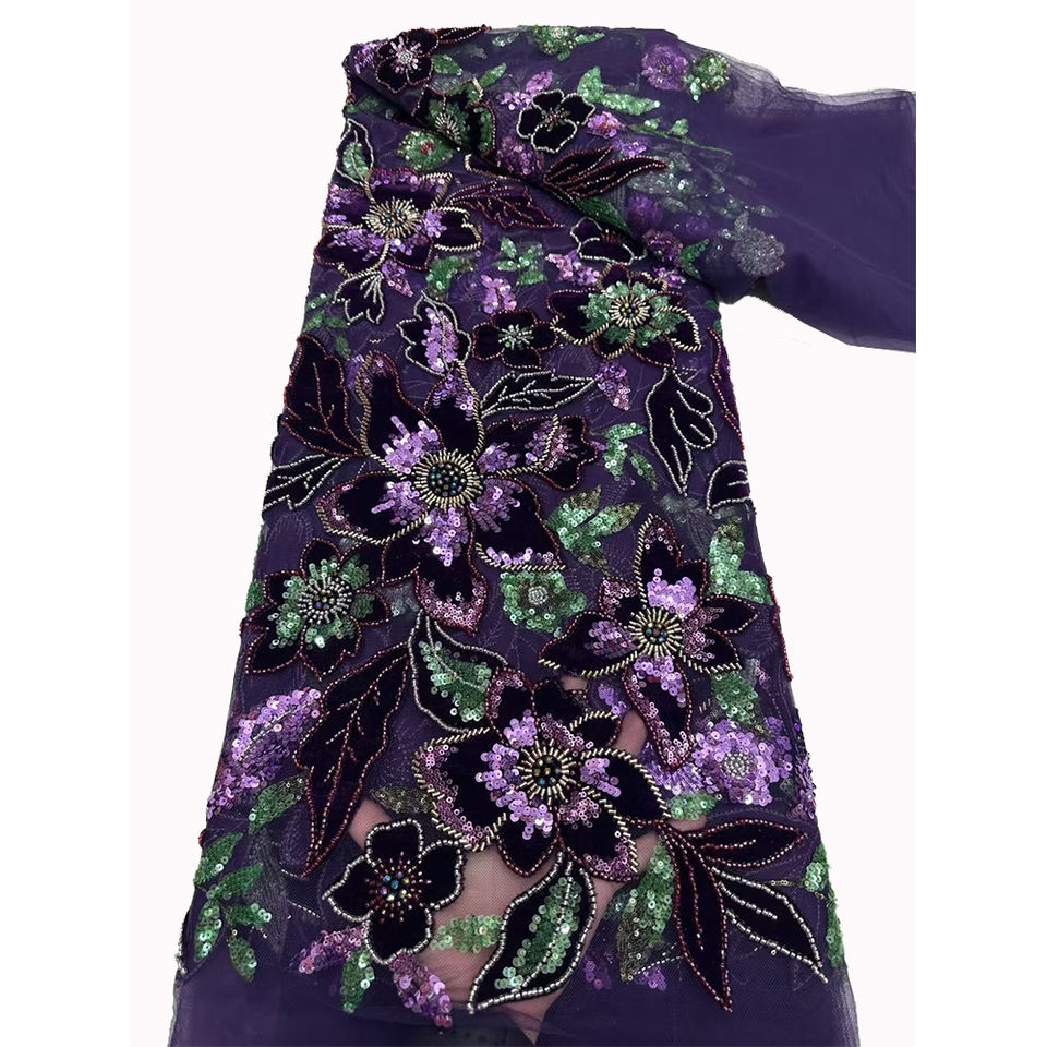 NIAI Velours à paillettes violet foncé, technologie de pointe, prix compétitif, vente en gros, perles pour mariage, collection 2025, offre spéciale C419