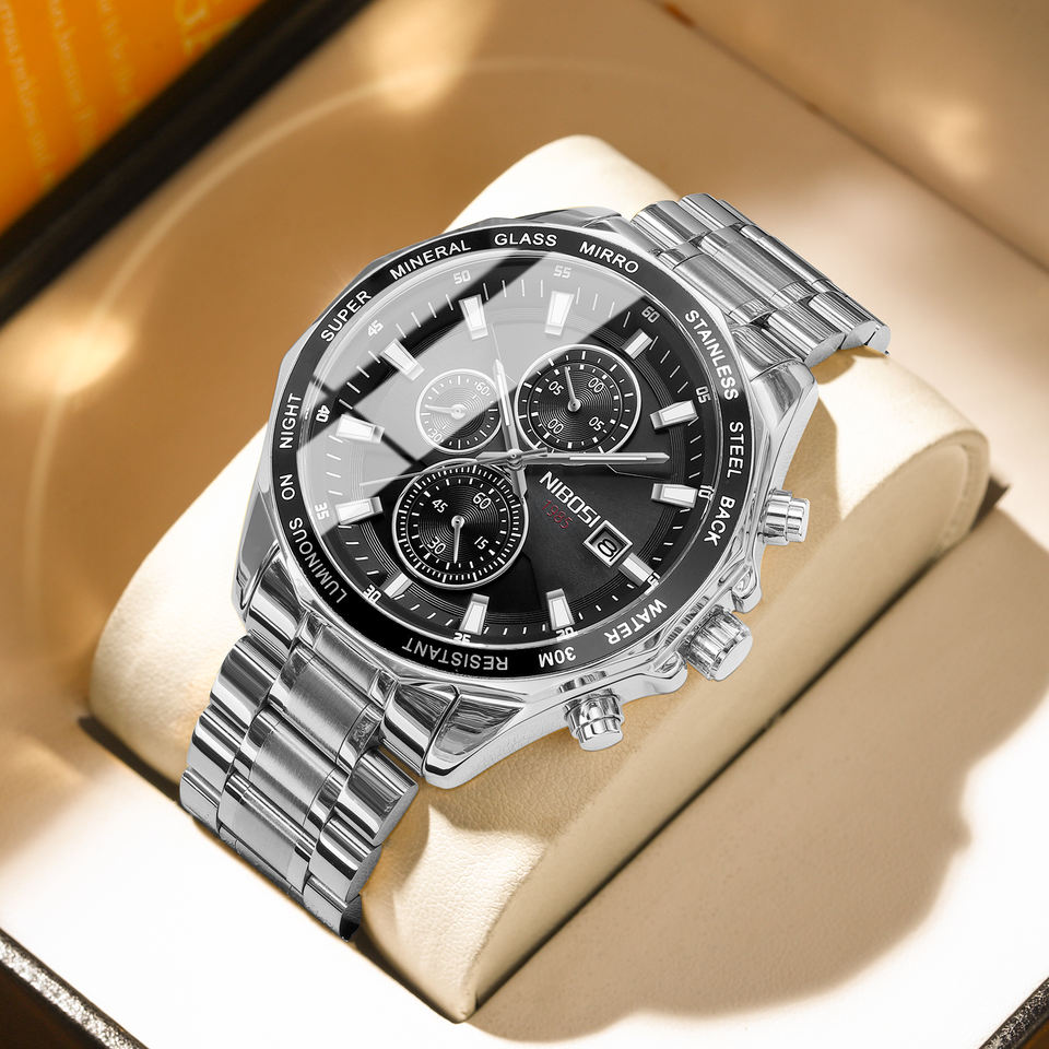 Dispositif:Date automatique, Chronographe, Calendrier complet, Jour/date, Imperméable
