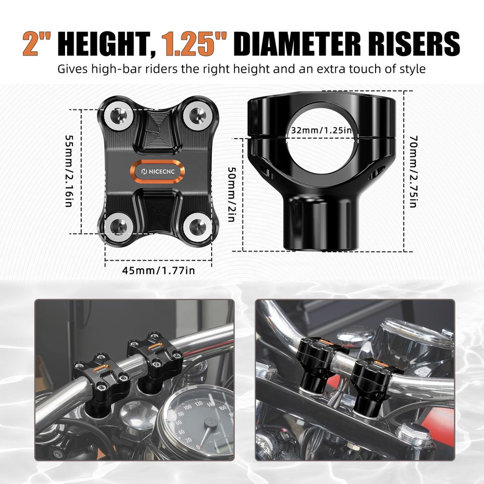 NICECNC Rehausseurs de guidon en aluminium 2 "pour barre 1.25" pour Harley Dyna CVO Fat Bob FXDFSE FXDFSE2 Fat Bob FXDF Low Rider FXDL