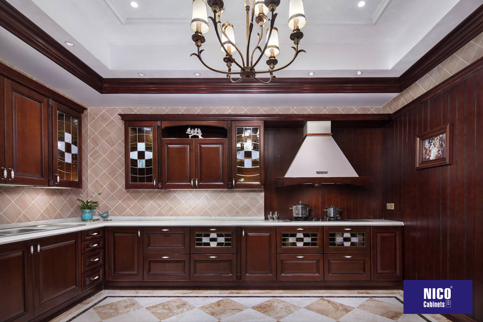 NICOCABINET Meuble de cuisine italien sur mesure, bois massif classique, mobilier de luxe, marbre, charnières à fermeture amortie, robinet, évier, crédence