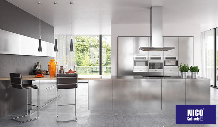 Armoire de cuisine modulaire NICOCABINET, crédence résistante à l'humidité, charnières à fermeture douce en acier inoxydable, design moderne pour usage hôtelier