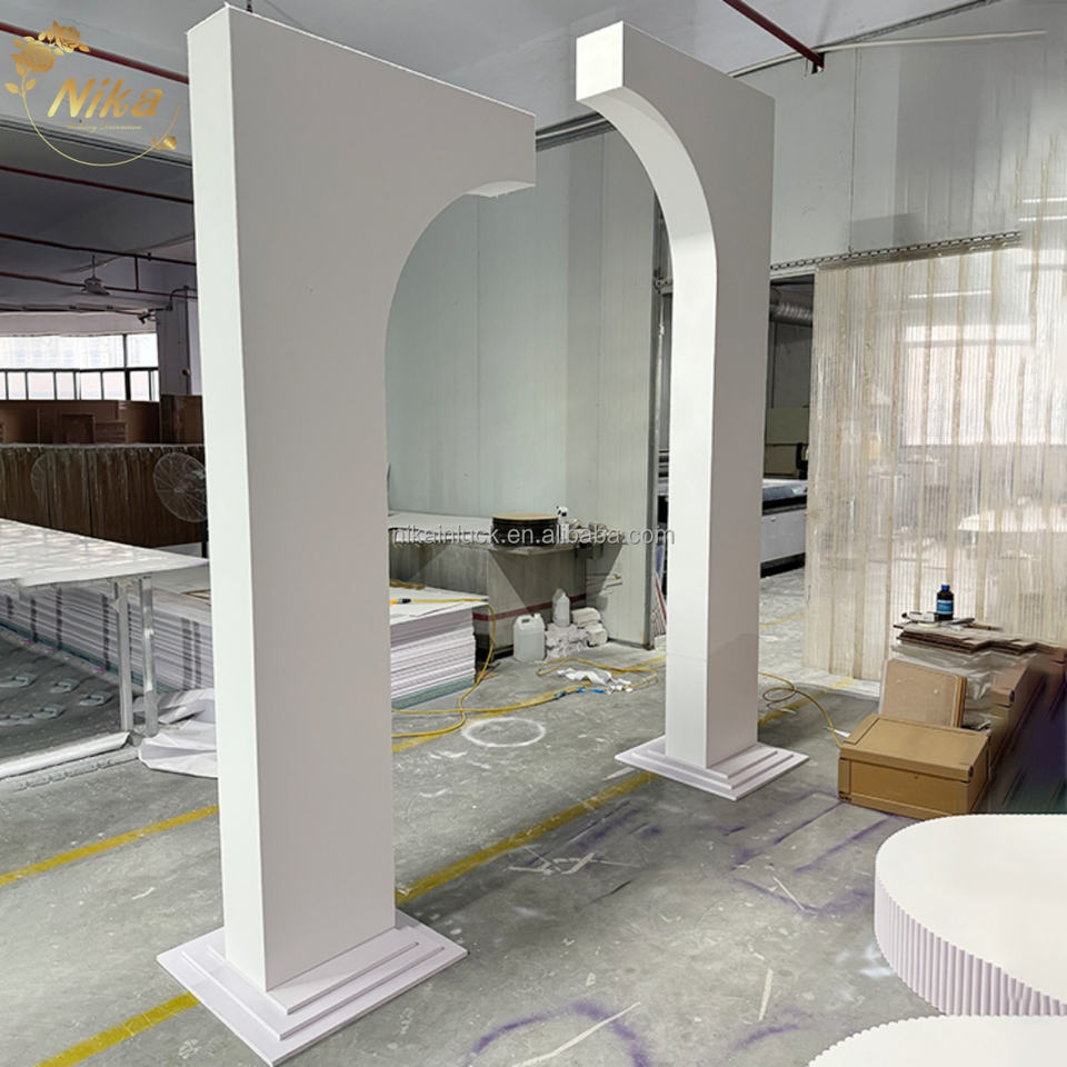 NIKA Décoration de toile de fond blanche en PVC de haute qualité avec lustre, arche murale 3D en acrylique décalée pour mariage
