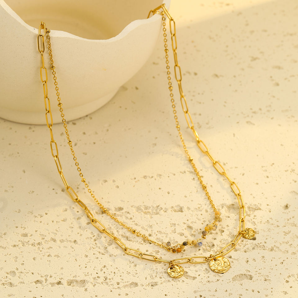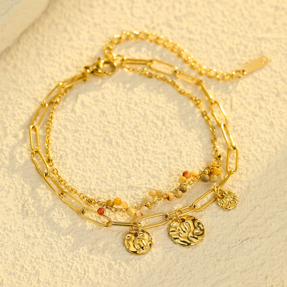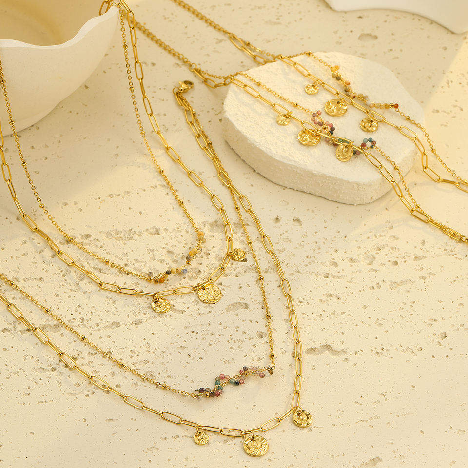 Collier avec pendentif en pierre naturelle multicolore NIMAI et bracelets à double chaîne pour femmes, ensembles de bijoux en acier inoxydable