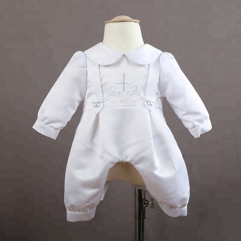 NIMBLE Satin White Boutique Baby Boys Christening Dress Wear Kids Rompers Children Communion Clothing Children Baptism Outfits