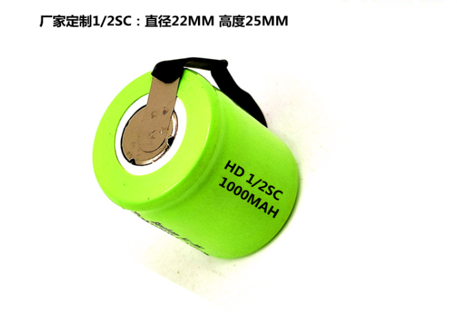Batteries cylindriques rechargeables au lithium-ion NIMH NI-MH 1/2 SC 1,2 V 800 mAh 1000 mAh pour lampes et instruments