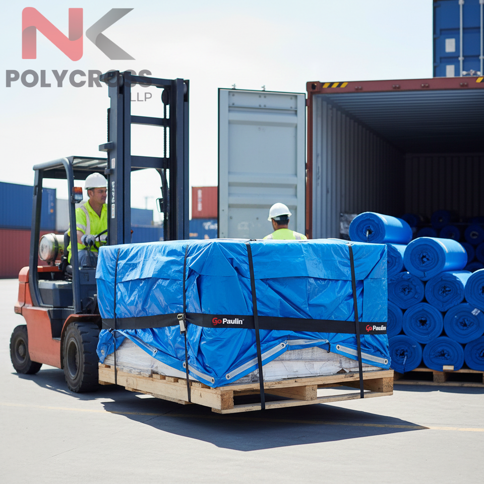 Bâche de protection multicouche NK Polycross Export en PE avec revêtement PVC, imperméable et ignifuge, 150 g/m², pour marchandises, applications marines et camions, export Inde