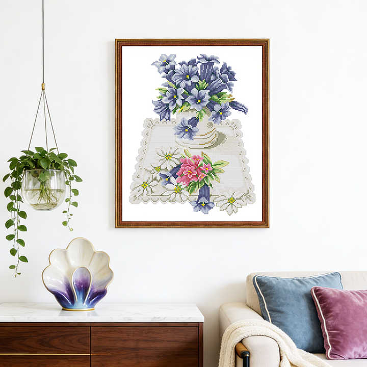 Kits de Broderie au Point de Croix Motif Bouquet NKF avec Outils, Tissu Aida Pré-imprimé ou à Broder, Ensemble de Broderie DIY, Artisanat Artistique, Toile à Broder