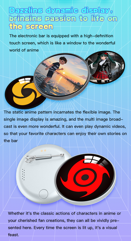 Badge électronique NKIWI L8 1,85 pouces haute définition avec animation dynamique en ABS, personnalisable pour la lecture de vidéos/GIFs/musique/photos