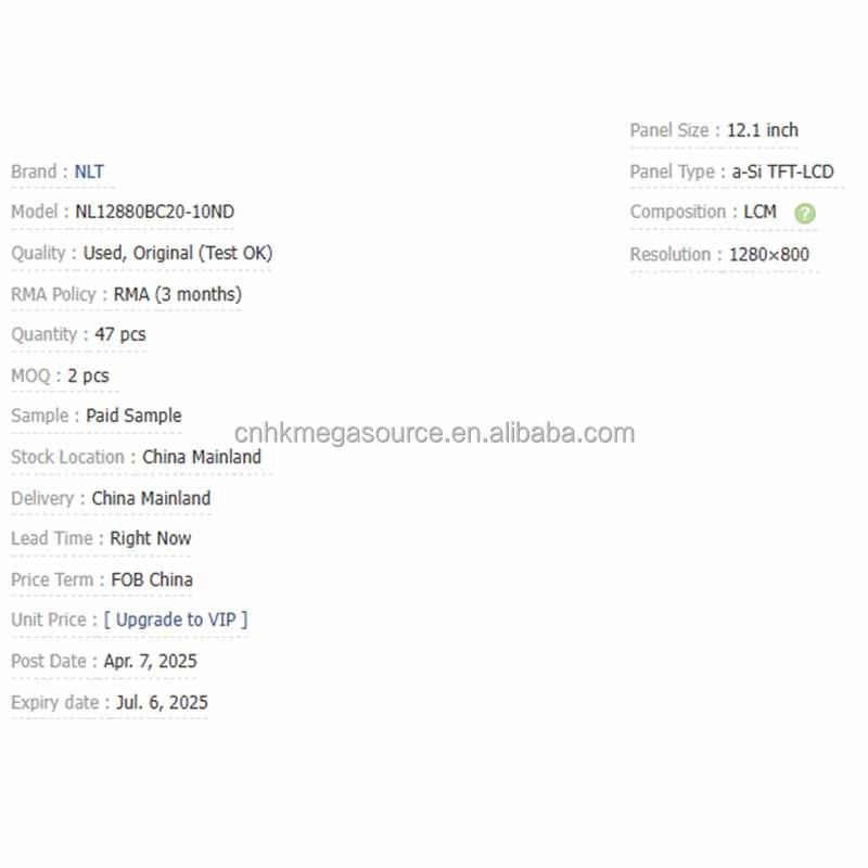 Model Number:NL12880BC20-10ND