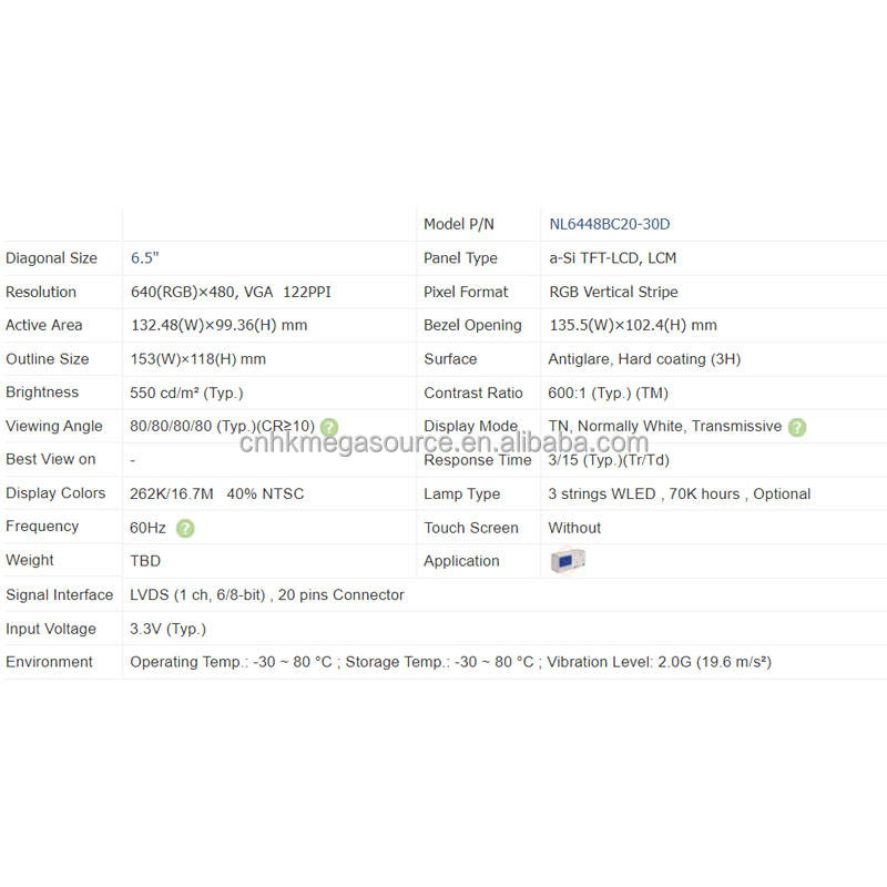 Écran NL6448BC20-30D 6.5 pouces 640*480 Affichage Lcd NL6448BC20-30D Panneau Lcd