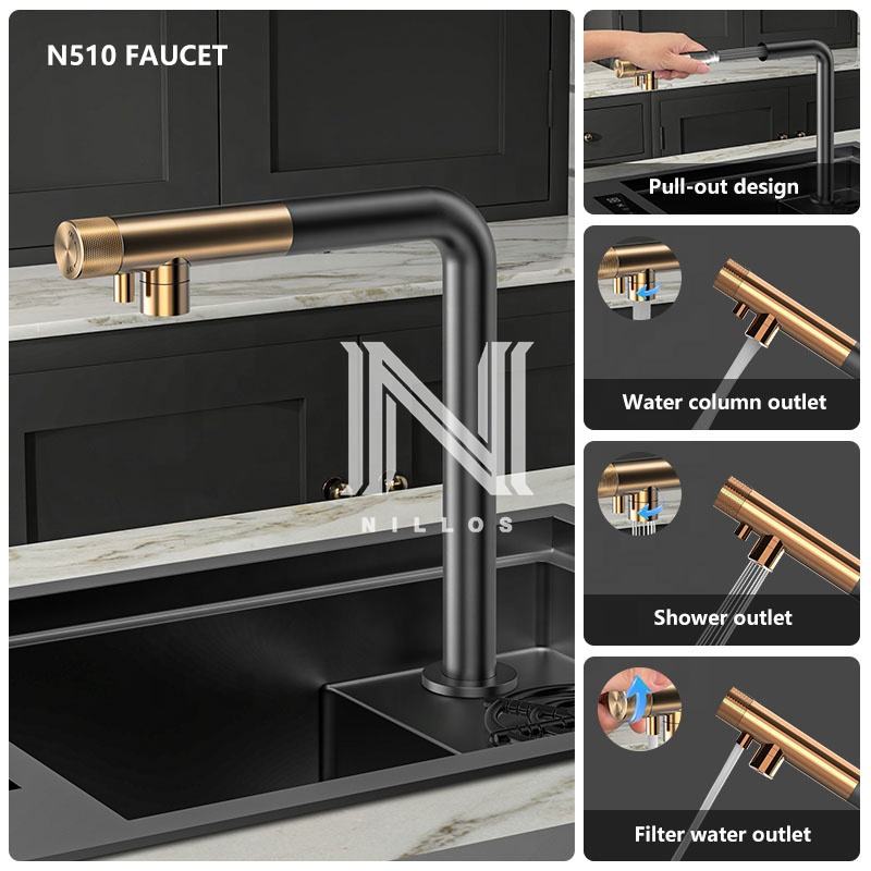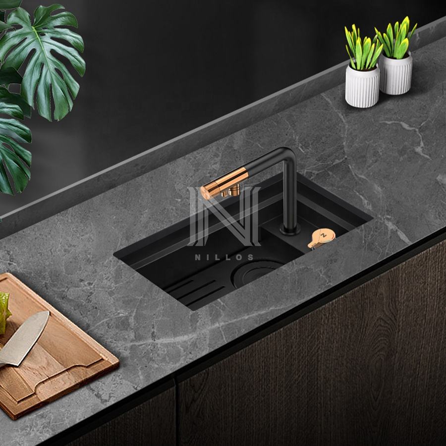 NLS4526 Évier de cuisine dissimulé pour bar, fait main, en acier inoxydable 304, carré, simple, avec cache robinet à deux trous, pour camping-car et caravane