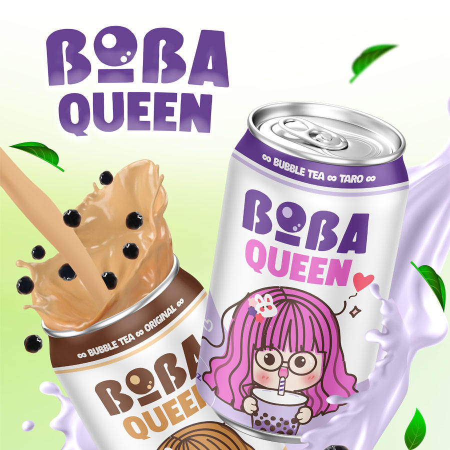 NO.1 Thé au lait à bulles Thé BOBA QUEEN prêt à boire avec du lait et des perles Boba 330ML en conserve Vente en gros Meilleur prix Échantillon gratuit