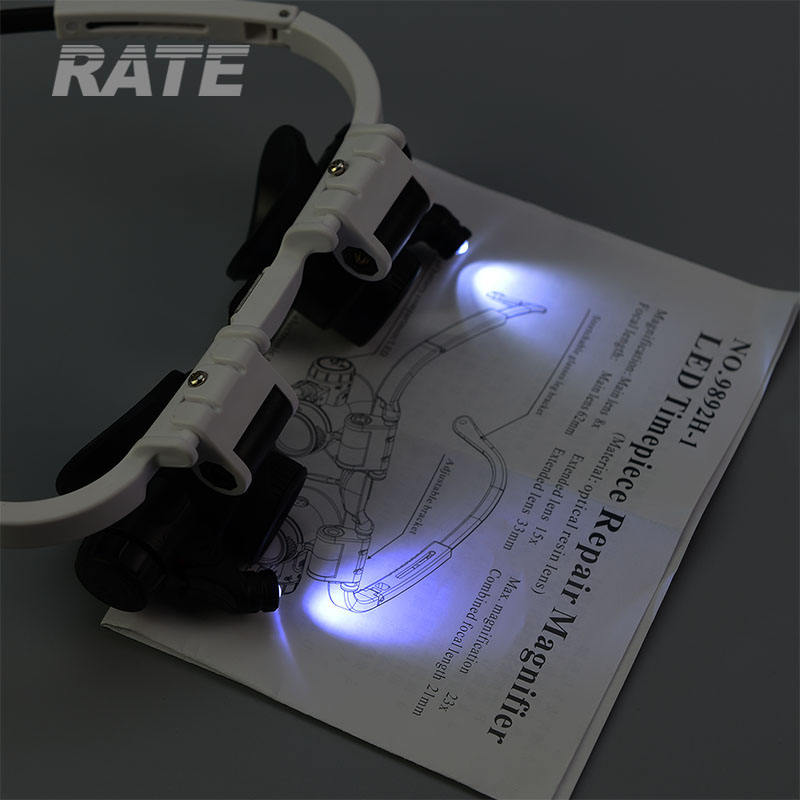 Name:NO.9892H-1 Double Eye Watch Repair Magnifier With LED Light