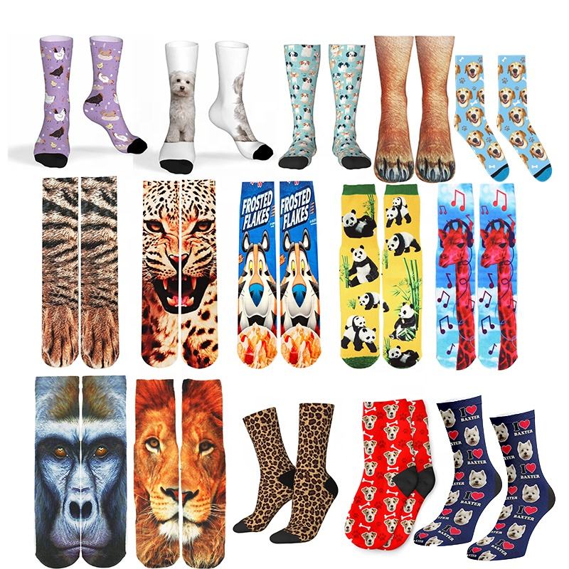 Chaussettes personnalisées pour animaux de compagnie avec impression numérique 3D sans limite de couleur, chaussettes amusantes avec photo, chaussettes imprimées avec des animaux, des léopards, des chiens et des chats